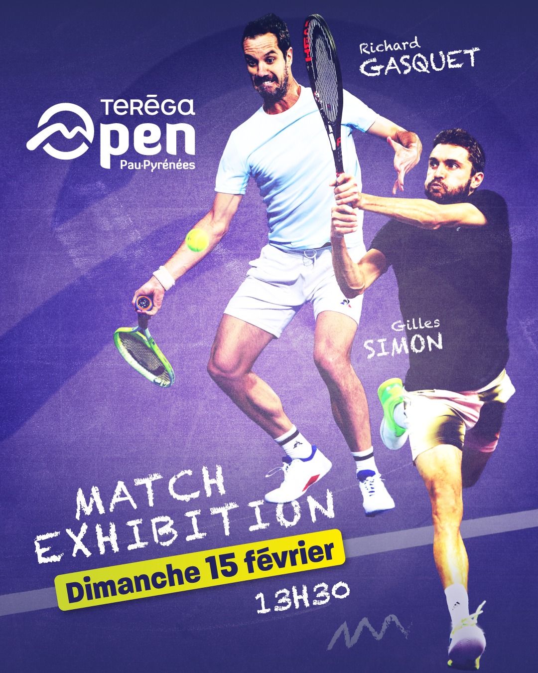 Dimanche 15 février à 13h30, en préambule de la finale du Teréga Open Pau-Pyrénées prévue à 15h00, Richard Gasquet et Gilles Simon ont rendez-vous sur le court central du Palais des Sports de Pau pour un match d’exhibition de haut niveau.